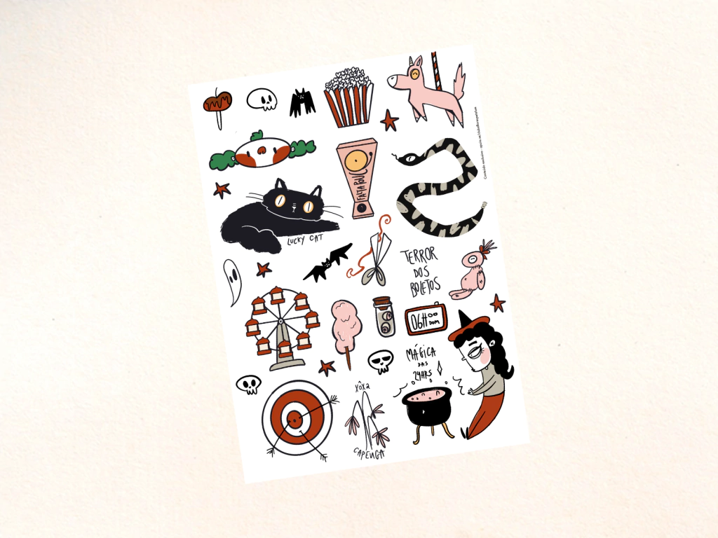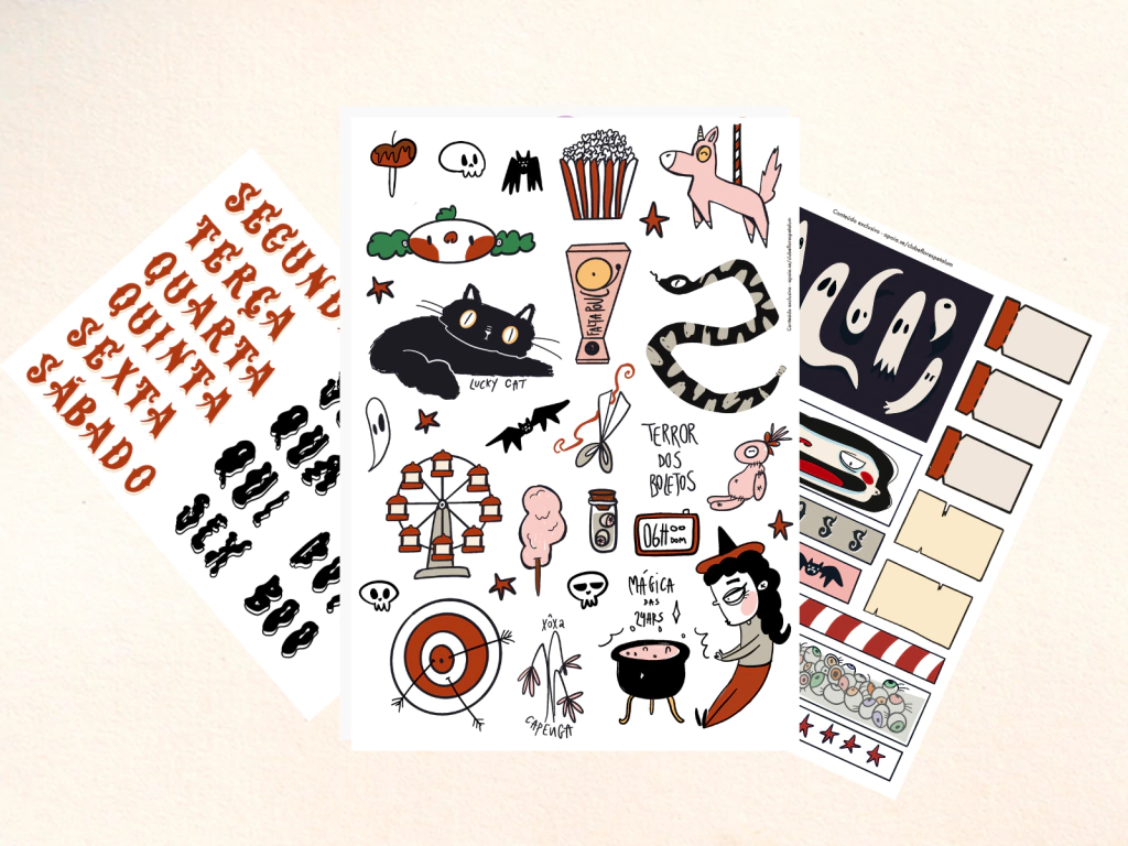 Cartelas de Adesivo Halloween e Parque de Diversões